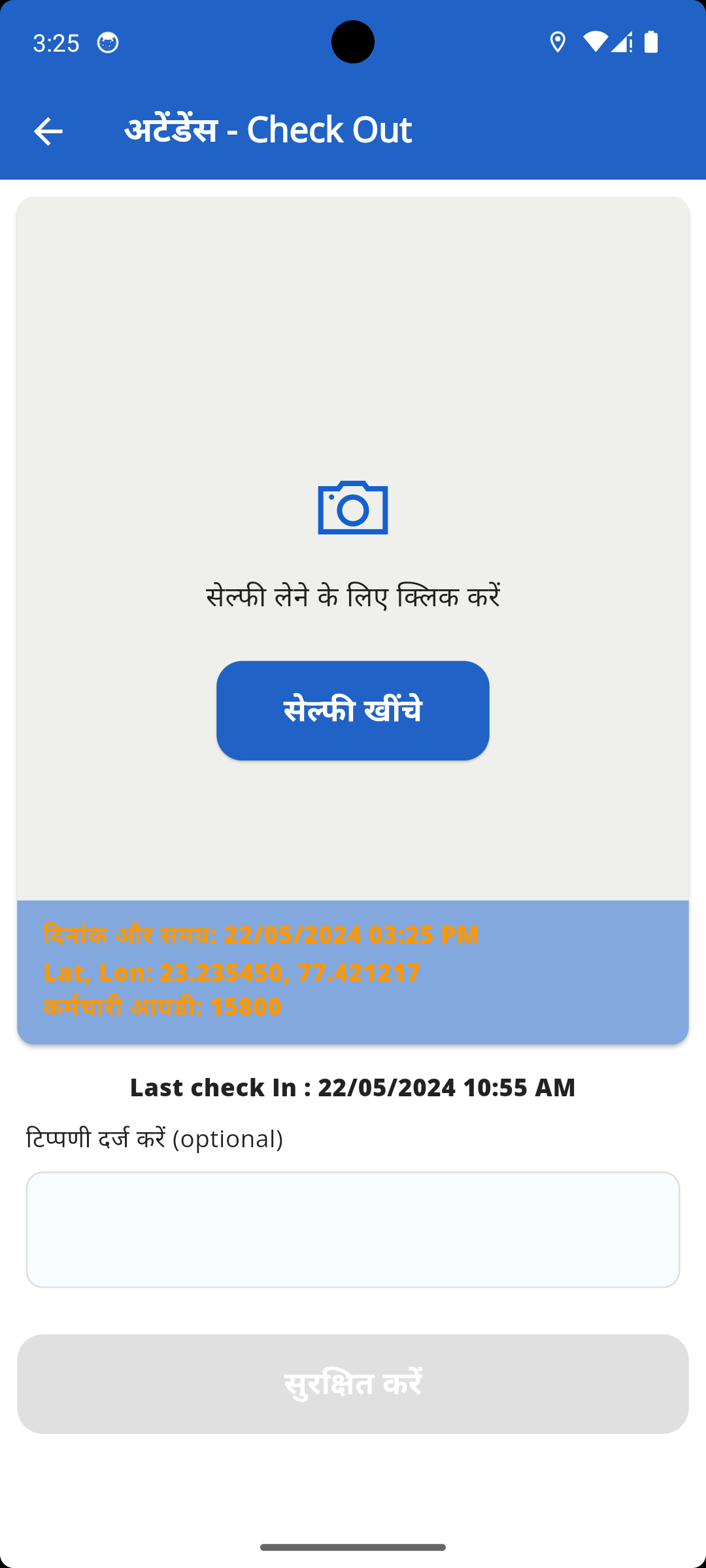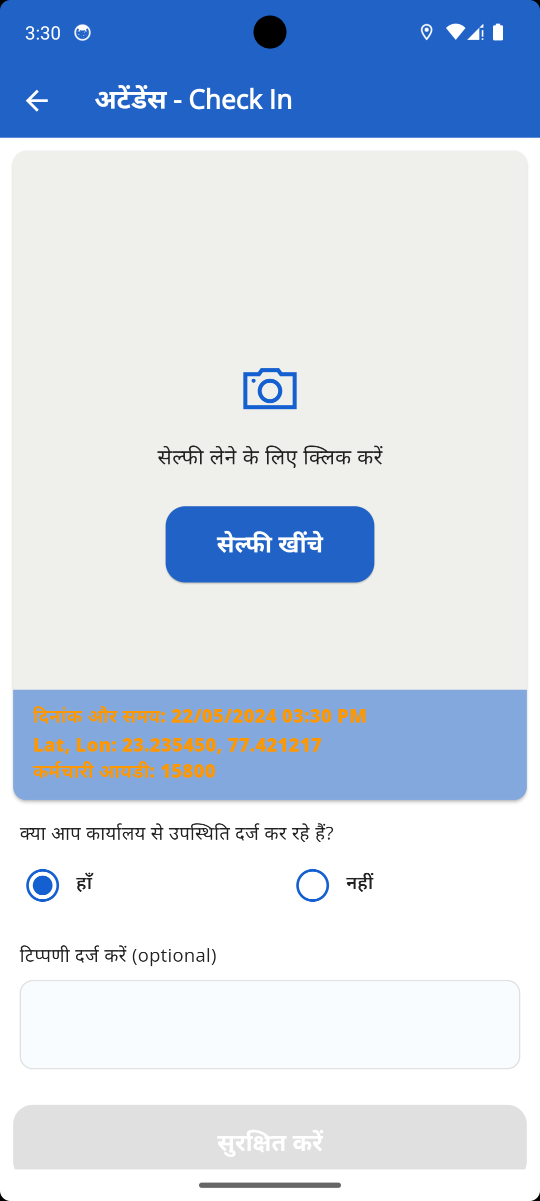 समस्त कर्मचारी, HR(मानव संसाधन) एवं HO (संगठन का प्रमुख) लॉग इन करके आँख झपकाने के साथ सेल्फी आधारित उपस्थिति दर्ज कर सकते है